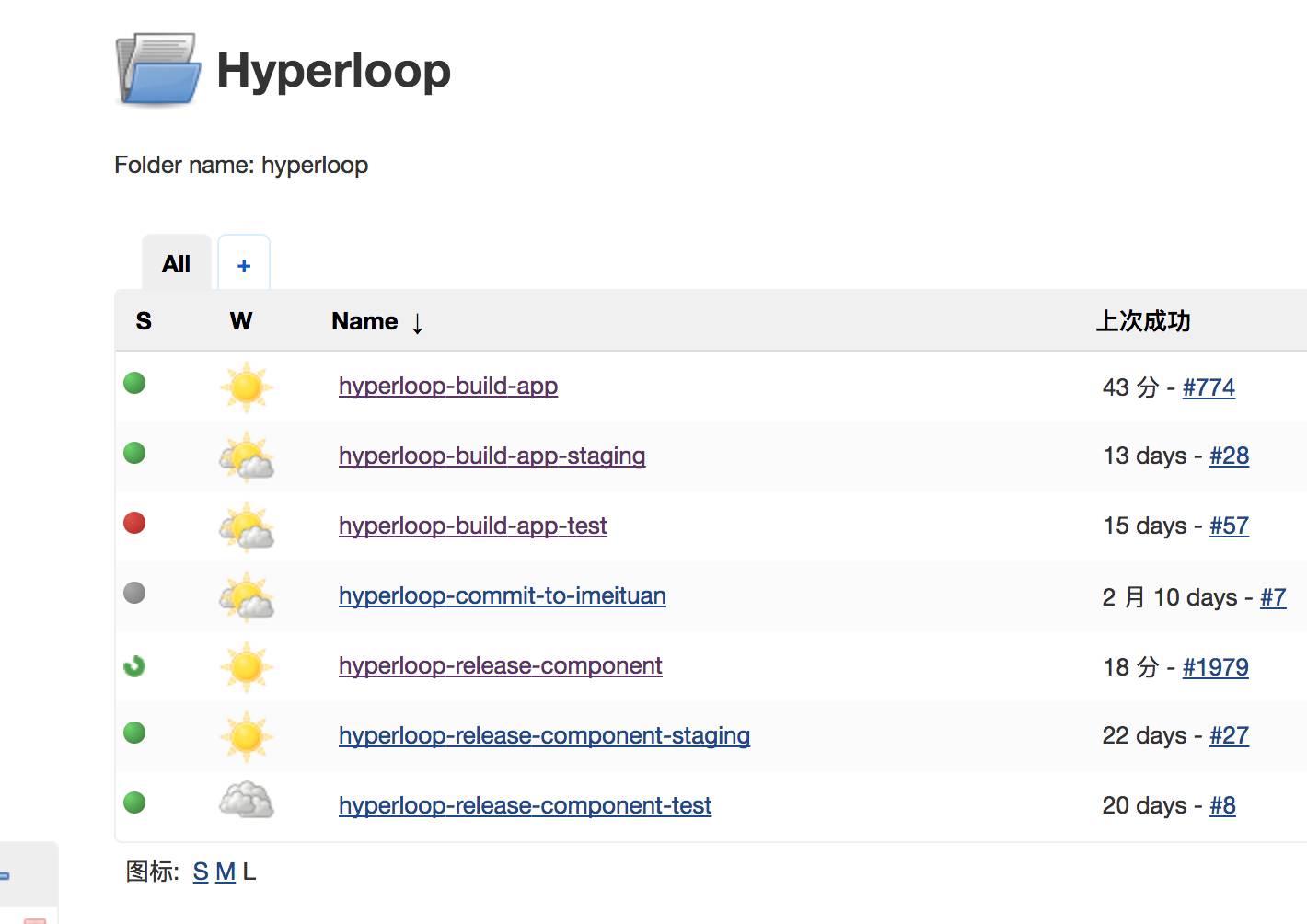 为什么会有这么多的任务呢?因为我们发布流程会提供一些必要的功能,而每个业务方在使用这些功能的时候需要配置一些自己的业务参数,出于 Jenkins 的一些局限性,常规的做法就是复制一份示例 Job 然后改成自己的构建任务。