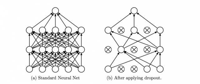 15)丢弃(Dropout)——Dropout是一种正则化技术,可防止网络过度拟合套。顾名思义,在训练期间,隐藏层中的一定数量的神经元被随机地丢弃。这意味着训练发生在神经网络的不同组合的神经网络的几个架构上。你可以将Dropout视为一种综合技术,然后将多个网络的输出用于产生最终输出。
