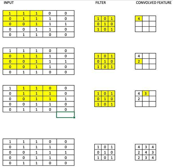 17)滤波器(Filters)——CNN中的滤波器与加权矩阵一样,它与输入图像的一部分相乘以产生一个回旋输出。我们假设有一个大小为28 * 28的图像,我们随机分配一个大小为3 * 3的滤波器,然后与图像不同的3 * 3部分相乘,形成所谓的卷积输出。滤波器尺寸通常小于原始图像尺寸。在成本最小化的反向传播期间,滤波器值被更新为重量值。