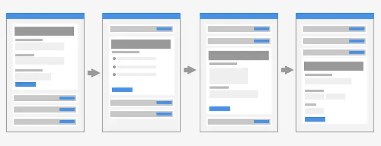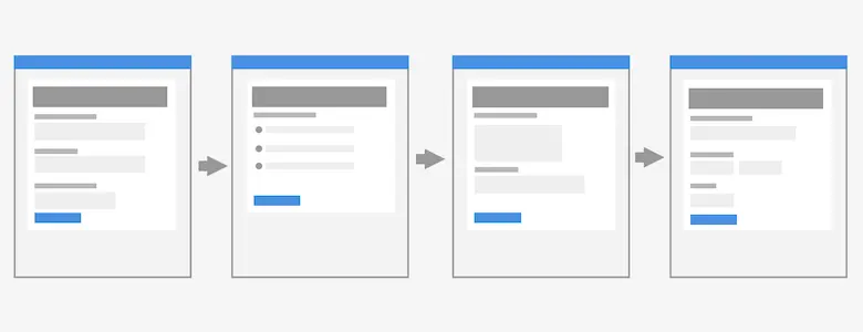 这种模式是指把复杂的流程分解成多个小碎片,把每个小碎片独立一页展示。
