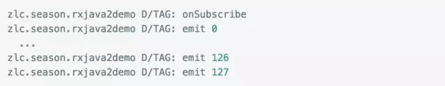 zlc.season.rxjava2demo D/TAG: emit 126zlc.season.rxjava2demo D/TAG: emit 127zlc.season.rxjava2demo D/TAG: emit 128 //这是第129个事件zlc.season.rxjava2demo