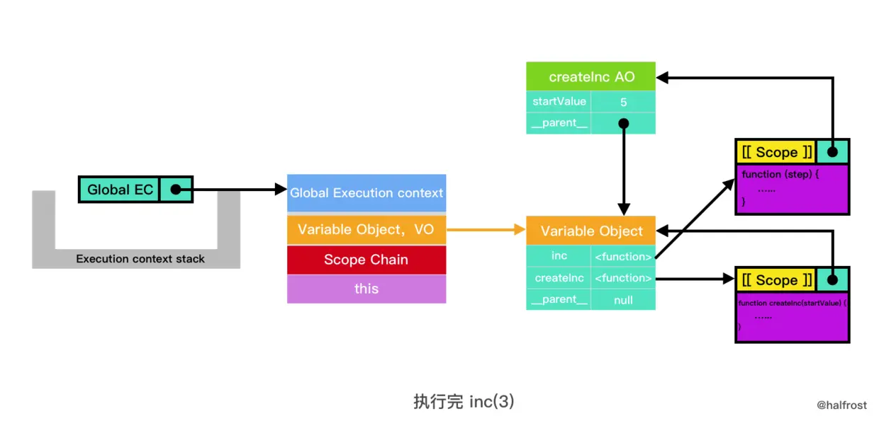 最后,inc Execution Context 退出了执行上下文栈,但是 createInc AO 没有销毁,可以继续访问。