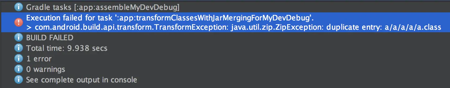 Error:Execution failed for task ':app:transformClassesWithDexForDebug'.