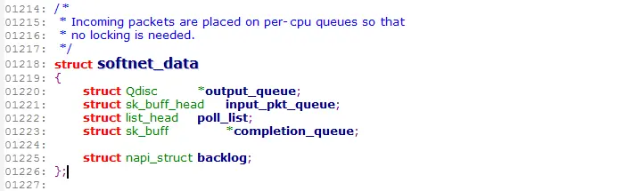 softnet_data 结构内的字段就是 NIC 和网络层之间处理队列,这个结构是全局的,每个cpu一个,它从 NIC中断和 POLL 方法之间传递数据信息。图3说明了softnet_data中的变量的作用。
