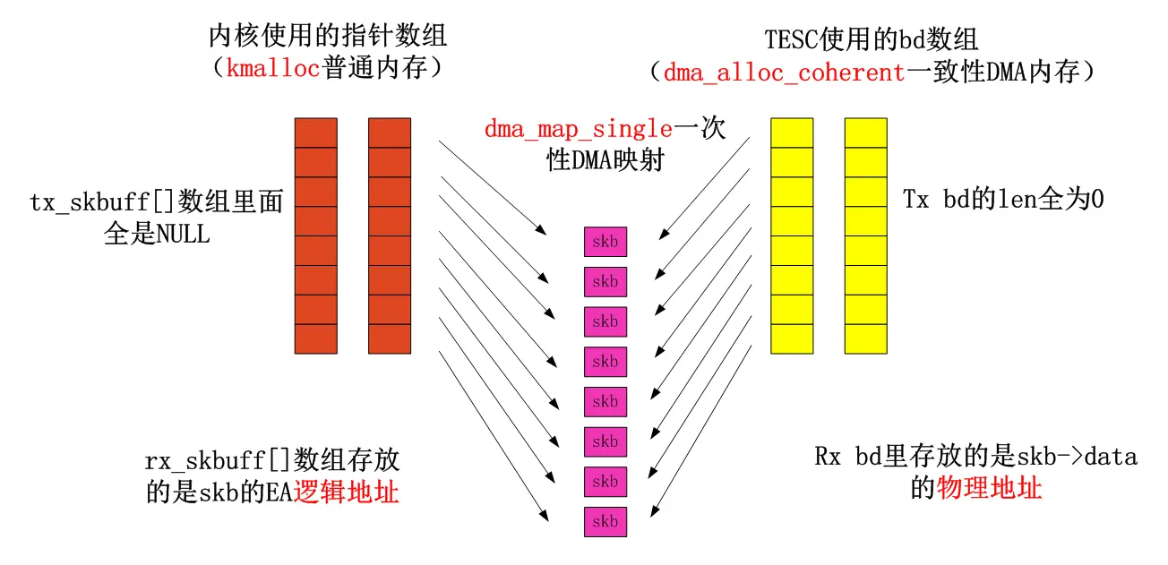 bdp = priv->rx_bd_base; //bd有WARP标记,说明是最后一个bd了,需要“绕回来”