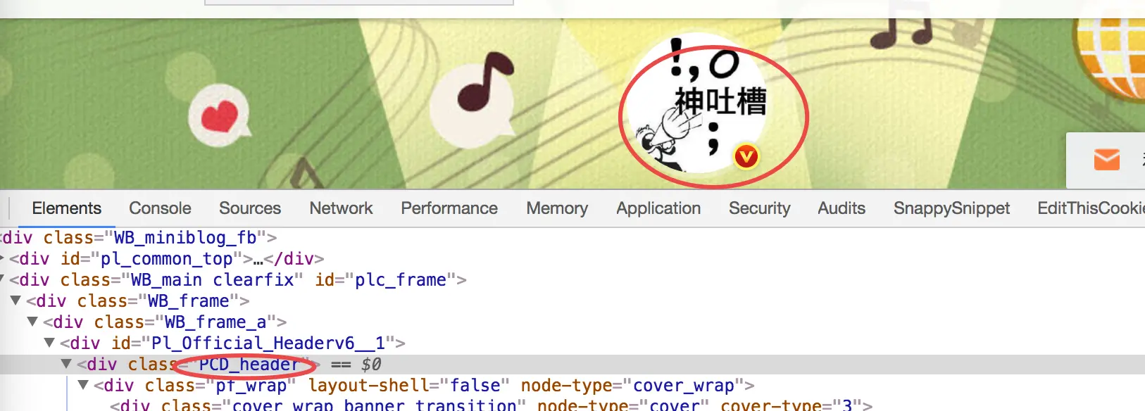 那么这么多的FM.view(),我们怎么知道该提取哪个呢?这里有一个小技巧,由于只有中文会被编码,英文还是原来的样子,所以我们可以看哪段script中包含了渲染后的页面中的字符,那么那段应该就可能包含所有页面信息。我们这里以顶部的头像为例,如图
