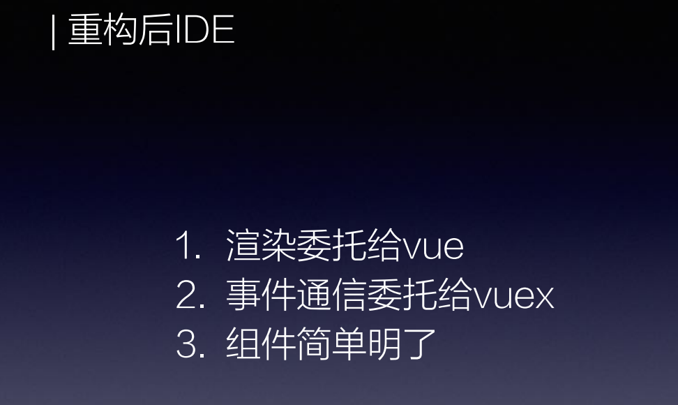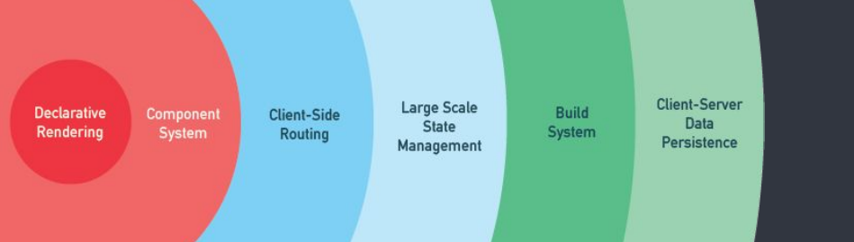 最早只想解决一些视图层的问题,并没有完全服务于大型业务的功能。但是随着 Vue 的发展开始增加辅助工具,例如 vue-router, vue-loader, vuex