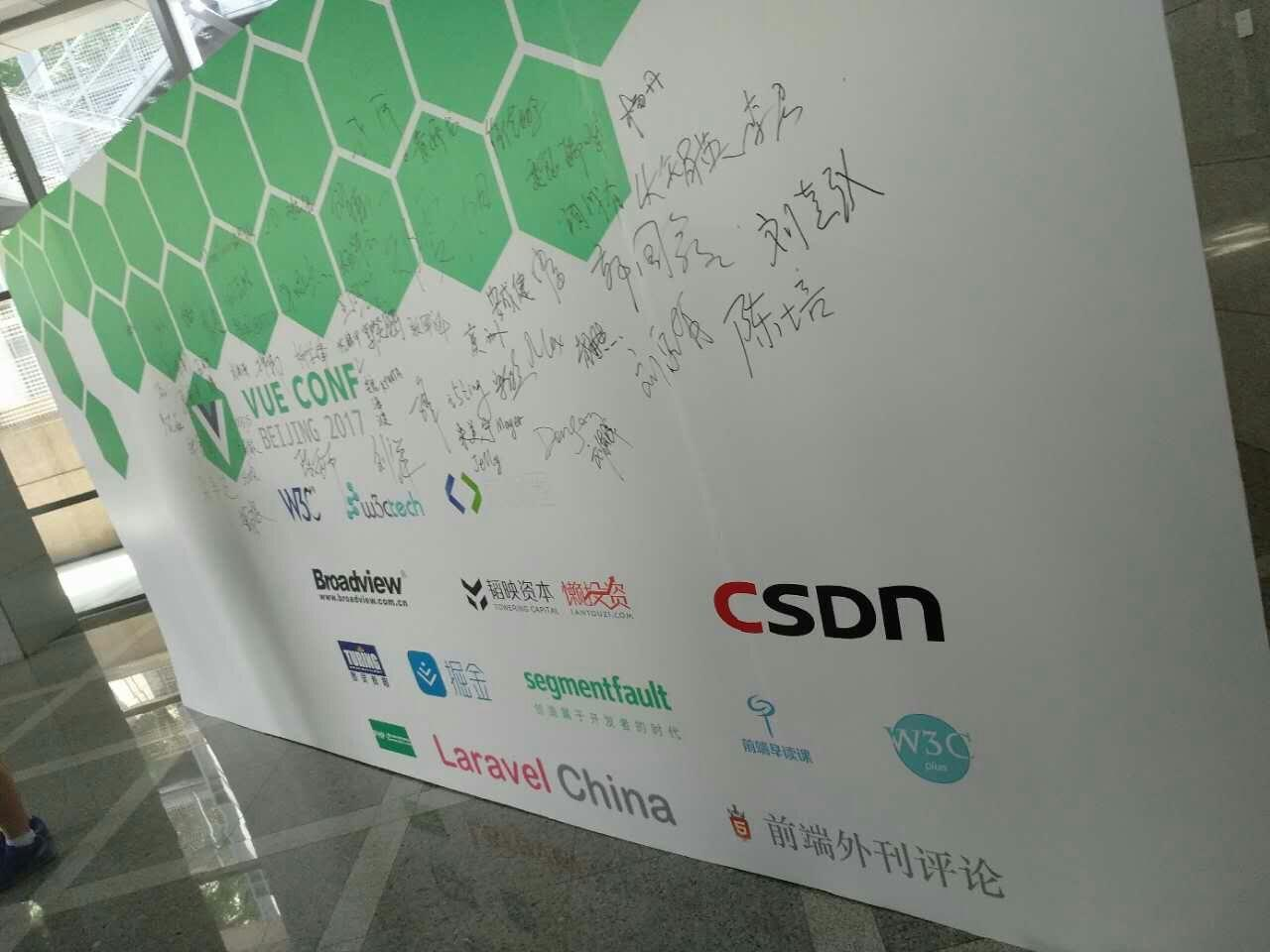 会后才知道,原来尤大大昨天凌晨发高烧,今早还是带病来进行了本届大会的开场主题演讲,在会后还热情地和喜爱Vue的小伙伴们一个个合影,不由得深感敬佩!近距离接触尤大大,发现他特别平易近人,丝毫没有大神的架子。了解到尤大大是86年出生的,13年(也就是27岁)写出了第一版Vue。打算把尤大大作为自己的男神和榜样,希望自己五年后也可以像尤大大一样做出属于自己的东西。(貌似有点不自量力23333,总之要加油!You can make it !!)