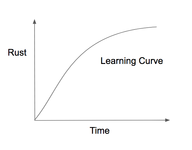 Rust is a system programming language, maintained by Mozilla. It is a very powerful language, however, you can see the curve, the learning curve is very very steep.