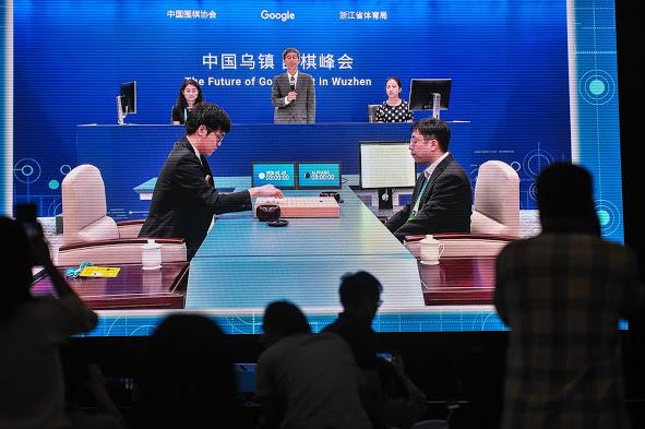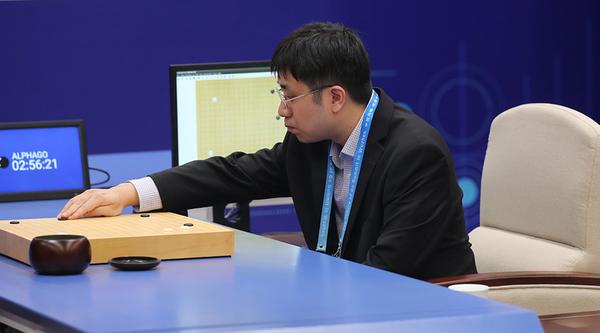 那天下午1点06,对局中的柯洁摘下眼镜,神情沮丧。两分钟后,柯洁起身离席。代替AlphaGo落下第127子的黄士杰博士,赶紧拿起杯子喝了一口水。随后黄士杰又恢复平静的表情,一直低头看着棋盘。