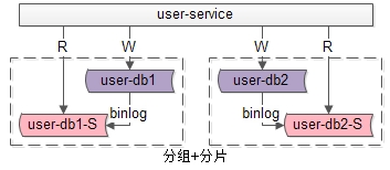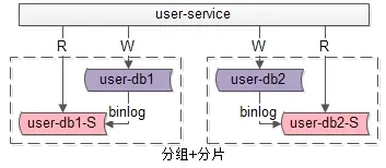 如果业务读写并发量很高,数据量也很大,通常需要实施分组 +分片的数据库架构: