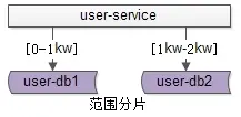 范围法如上图:以用户中心的业务主键uid 为划分依据,将数据水平切分到两个数据库实例上去: