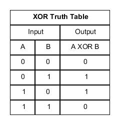 1 ^ 1 // 0 0 ^ 0 // 0 1 ^ 0 // 1 0 ^ 1 // 1