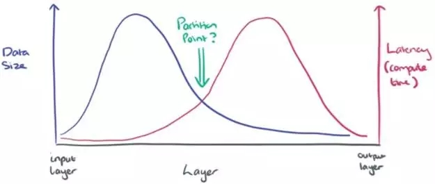 那么,在所有计算都实施在云服务器或移动设备上这两种“相对极端”的方法之间,是否存在某个最优切分点呢?换言之,在数据传输和实施计算两者之间或许存在一种折中。下图是一张简单的草图,以方便理解接下来要做的事情。