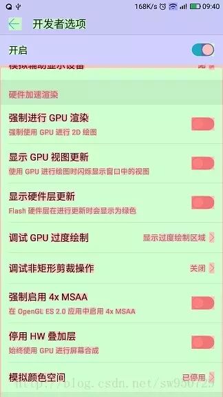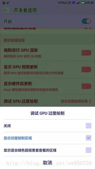 4. View过度绘制,导致某些像素在同一帧时间内被绘制多次,从而使CPU或GPU负载过重;