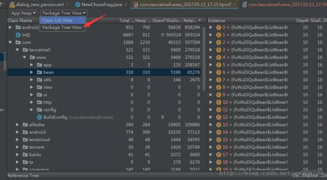 我们可以更仔细查找泄漏的位置,在AS里面使用 Heap SnapShot工具(堆栈快照)。如图所示: