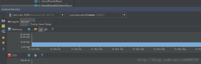 我们可以通过看Memory Monitor工具,检查一个一个的动作(比如Activity的跳转)。反复多次执行某一个操作,不断通过这个工具查看内存的大概变化情况。 前后两个内存变化增加了不少。
