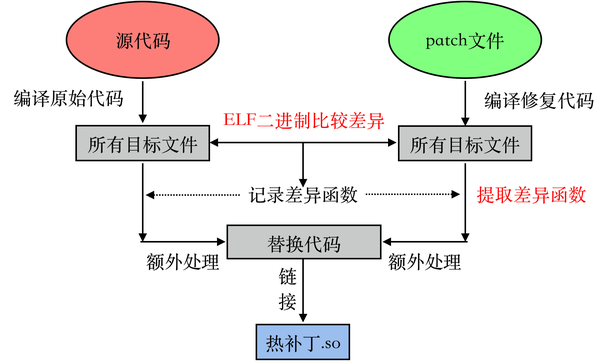 自动生成热补丁是利用热补丁生成工具,对现有的源代码和补丁文件进行处理,自动输出热补丁的技术。