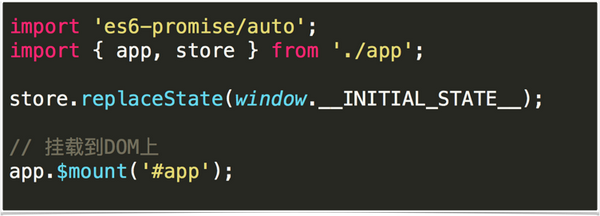 客户端入口文件很简单,同步服务端发送过来的数据,会和服务端生成的DOM 进行对比,也就是判断这个DOM 和自己即将生成的DOM 是否相同,如果相同就将客户端的vue实例挂载到服务端渲染的DOM上, 否则会提示警告。