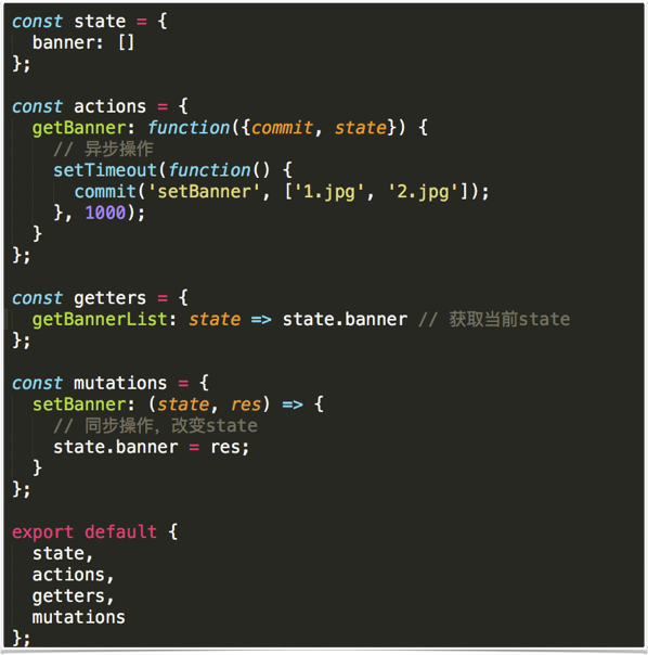 action 中去派发 Mutation。Mutation 去触发状态的改变,状态的改变,将触发视图的更新。Vuex项目结构