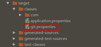 同时,在target/classes目录下,我们可以发现产生了一个git.properties配置信息:
