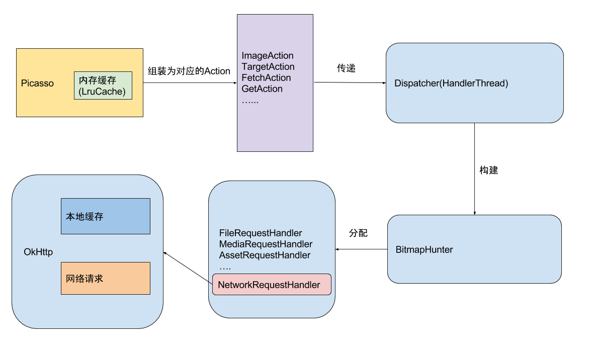 return new BitmapHunter(picasso, dispatcher, cache, stats, action, requestHandler);