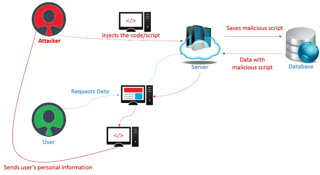基于存储的XSS漏洞的攻击方式一目了然,因为基于存储,属于一种持久化攻击。这种XSS攻击,攻击者的代码从服务器端返回的response中取得。