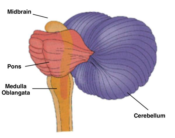 脑桥(pons)的工作非常零碎。它负责吞咽、膀胱控制、面部表情、咀嚼、唾液分泌、眼泪分泌和姿势保持等工作——基本上就是看心情什么都做点。