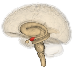 杏仁体(amygdala)可以说是大脑中负面情绪的集中地。它负责焦虑、悲伤、还有我们对恐惧的反应。大脑有两个杏仁体,奇怪的是左边的杏仁体表现更加乐观一些,除了通常的负面情绪之外,它有时也会产生愉悦的情绪,而右边的那个就一直处于心情不好的状态。