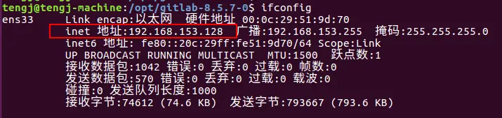 启动后,就可以访问系统页面了,这里先通过ifconfig命令获取当前的ip地址