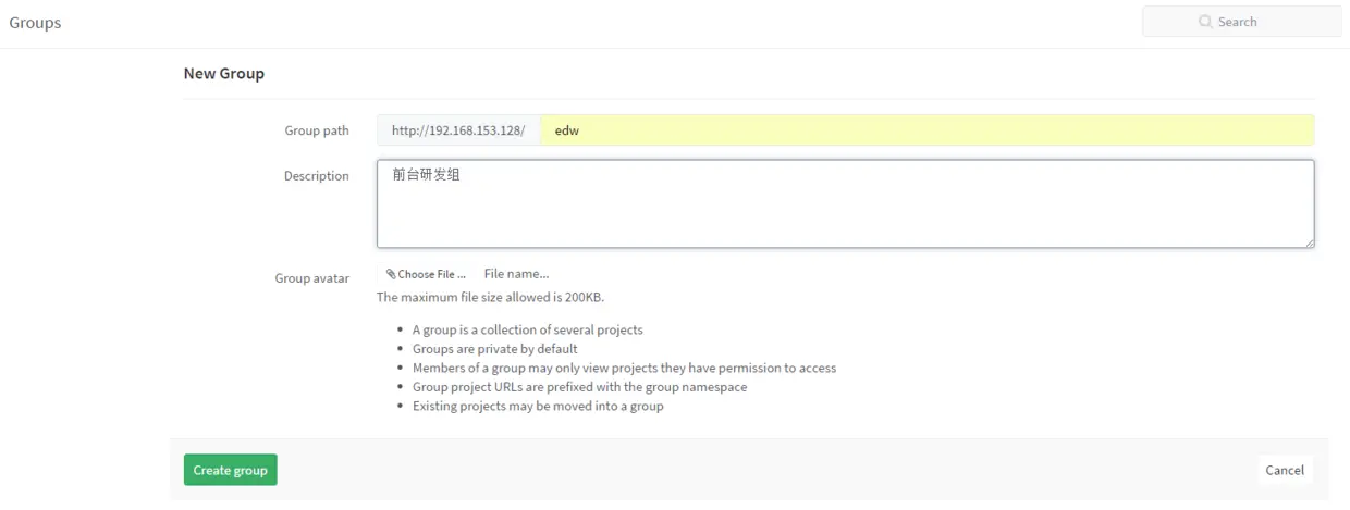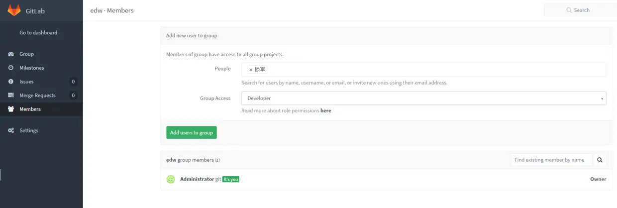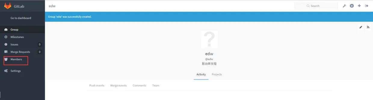 让组内成员自己注册账号激活后,我们就准备创建小组了,创建小组是为了方便管理,创建项目的时候直接指定小组,这样小组内的成员都可以看到项目
