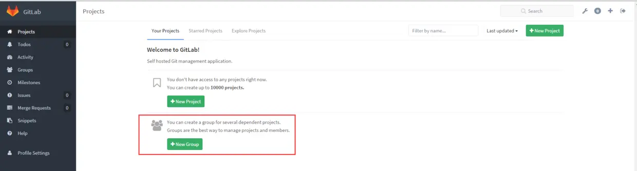 如果你是自己一个人玩就直接创建项目即可,因为我这边是给团队使用的,所以需要创建一下用户组,以及添加组成员,配置权限等,下面来介绍这些配置