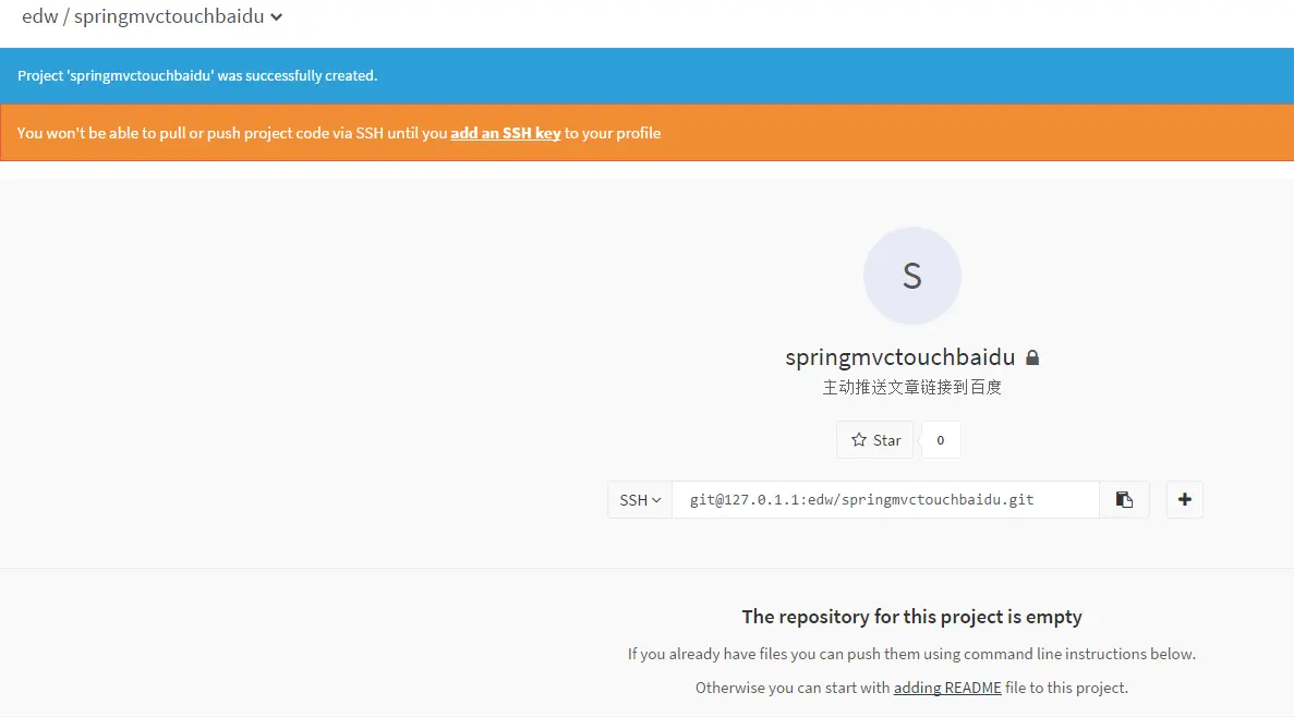 $ git clone git@192.168.153.128:edw/springmvctouchbaidu.git