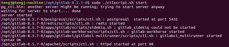 第一次安装好了就默认启动了gitlab,如果要手动启动的话有两种办法