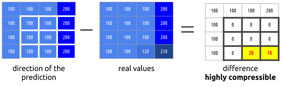 In order to do this, we can exploit how our vision works. We're better at distinguishing brightness than colors, the repetitions in time, a video contains a lot of images with few changes, and the repetitions within the image, each frame also contains many areas using the same or similar color.