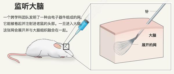 另一个小组正在研发一种纳米级别的、电极排成的神经网。这种网非常小,能够用注射器注入大脑。