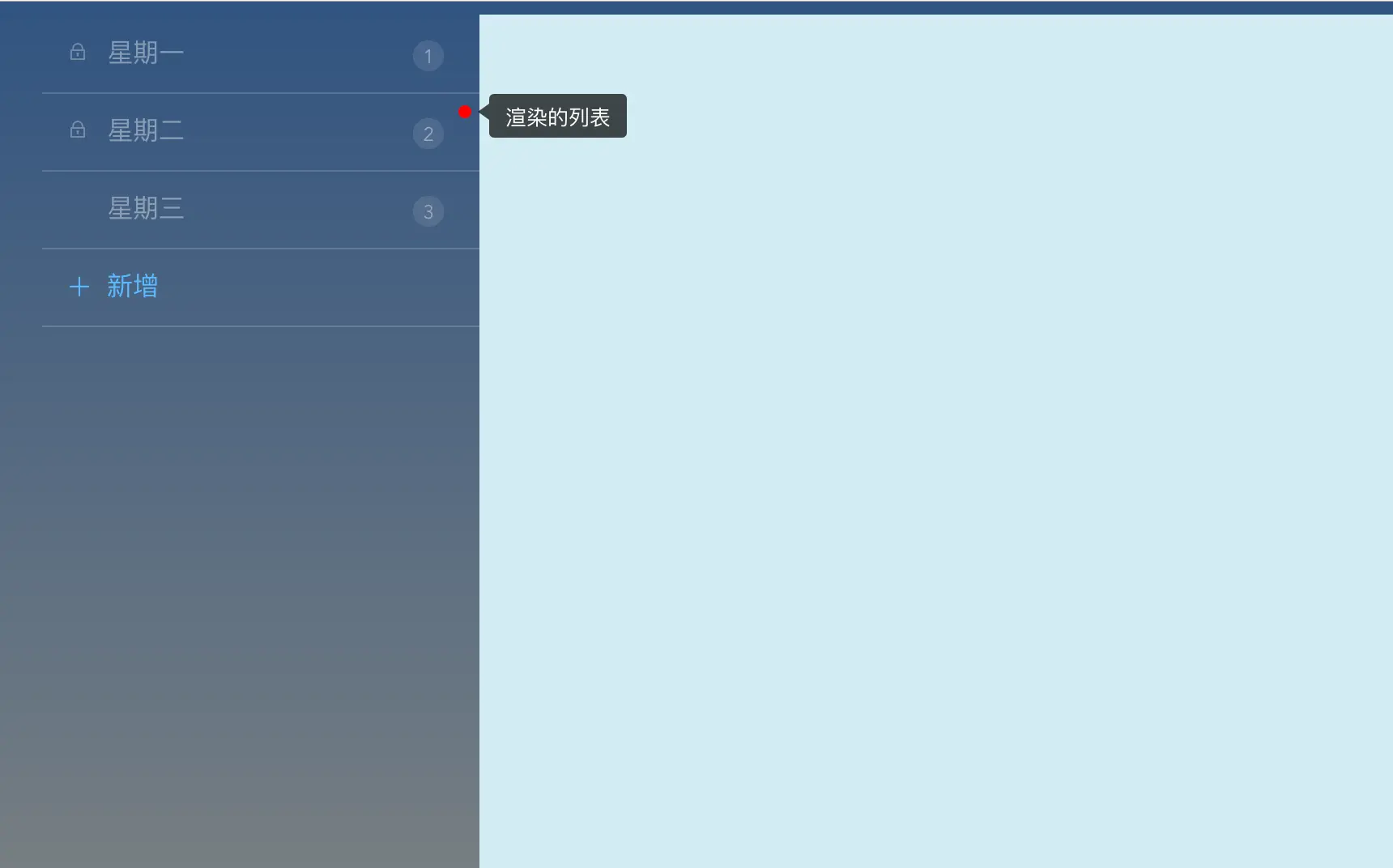 items: [{ title: '星期一', count: 1, locked: true }, //菜单的模拟数据