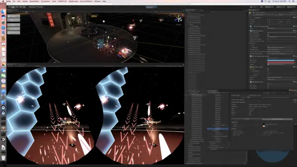 macOS平台Unity编辑器VR模式运行Space Pirate Trainer在该Unity实验预览版中,我们与Apple及Valve共同合作对Metal 2进行了优化,以适应当前的VR渲染路径、Multi-Pass以及Single-Pass变体。在最初的版本中,我们利用WWDC上公布的Metal 2新功能结合Instancing获得了显著的性能提升,而需要的Draw Call数量更是直接减半。