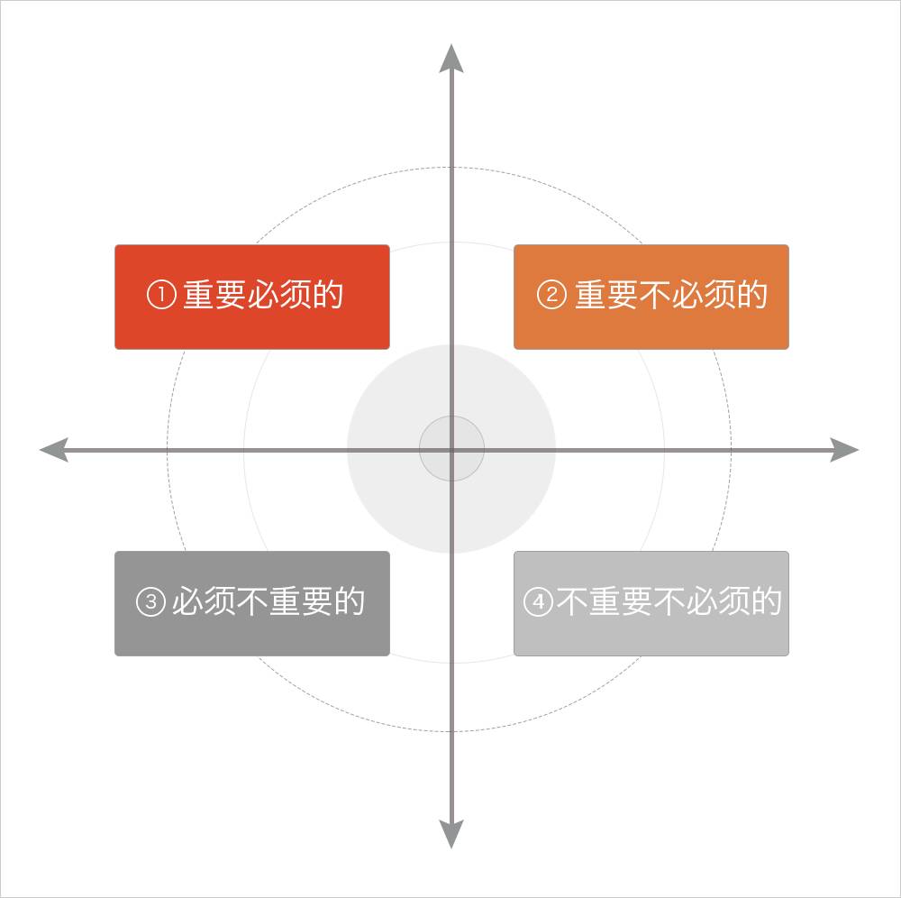 我们姑且把它叫做“十字法”,重要且必须的那一象限自然是优先级最高的。另外三个象限依次是优先级2 / 优先级3 / 优先级4。