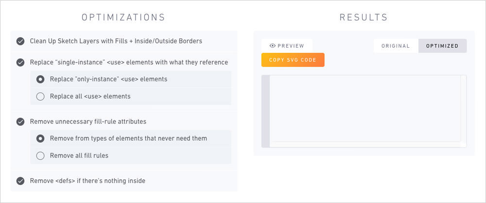SVGito 是一款用来优化 Sketch 生成的SVG文档的实用小工具,将你生成的SVG 文档的相应代码粘贴到 SVGito 当中,就能返还给你优化好的代码。