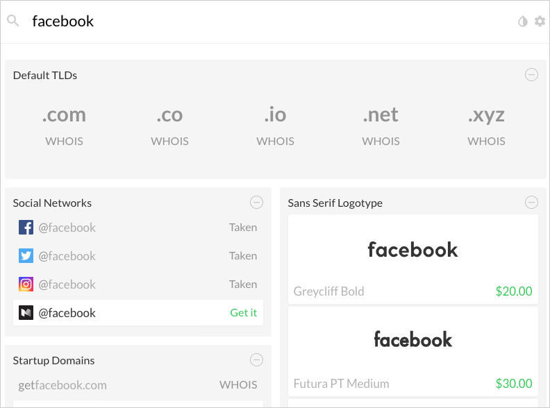 想为你的项目起一个没人用过又足够好听的名字以及相应的域名还蛮不容易的,而Launchaco 就是帮你解决这个问题的,它会帮你结合社交媒体(Twitter、Facebook等)的域名和用户名的信息,帮你生成一个合用的名称,甚至生成相应的标识。