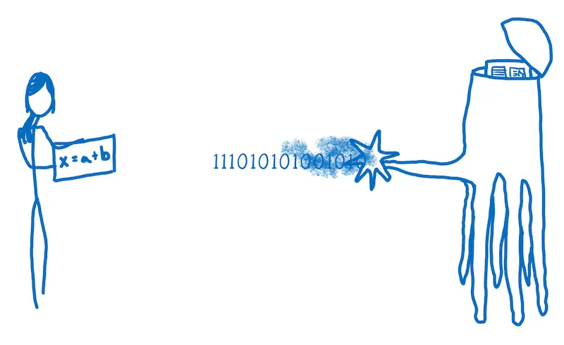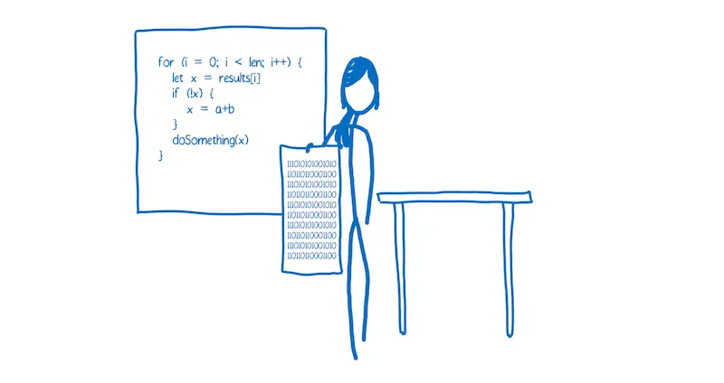 你说着人类的语言,你的电脑说着机器语言。甚至你可能不认为JavaScript或者其他的高阶编程语言不是人类语言,但它们确实是的。它们是为人类的认知设计,而不是为了电脑的认知。
