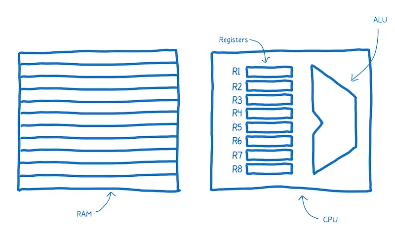 - 思考的部分叫做算术逻辑单元(Arithmetic Logic Unit, ALU)