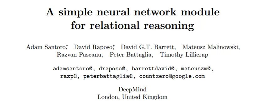 论文一:一种用于关系推理的简单神经网络模块(A simple neural network module for relational reasoning)