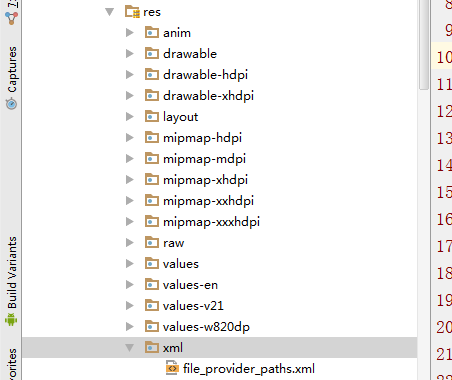 标签中的resource填写配置fileprovider的配置文件,在res资源目录下新建xml文件下,在该文件夹下创建file_provider_paths.xml文件,这个xml文件名并不是一定要这么起,只要和清单文件中配置的文件名一致就行。