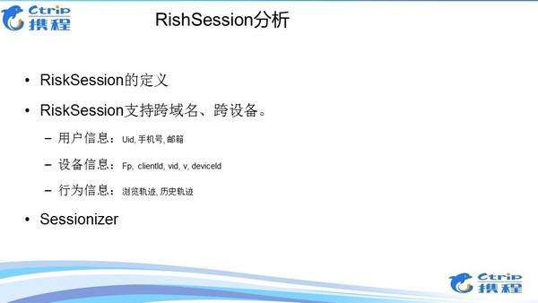 RiskSession的定义:量化、刻画 用户的行为,任何人通过任何设备访问携程的第一个event开始,我们认为Rsession start了,到他离开的最后一个event后30分钟之内没有任何痕迹留下,我们认为Rsession end。