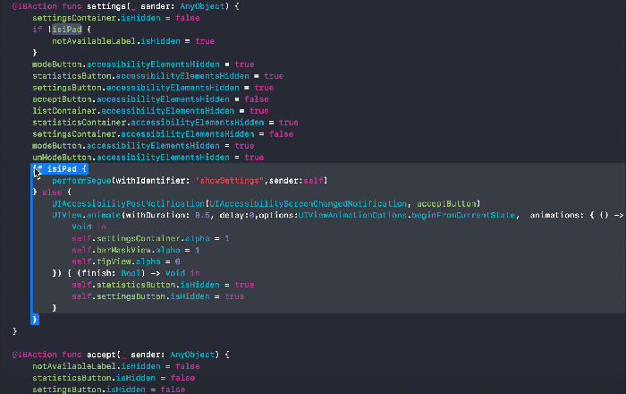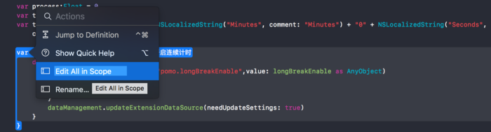 新的结构高亮功能方便你更清晰的查看代码结构,而按住 Command 在代码上移动就会显示,在你按下鼠标左键的时候编辑器会针对当前结构给出重构选项。