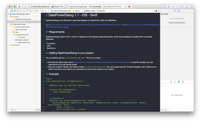 新版编辑器支持在 Xcode 内编辑和格式化查看 markdown 文档,并支持按住 Command 定位到链接。看项目 Readme 更方便了。