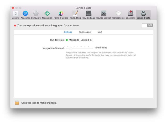 这次更新还自带了 Xcode Server 持续集成,你不必再单独下载 macOS Server 就可以在 Xcode 偏好设置中找到 Server & Bots。